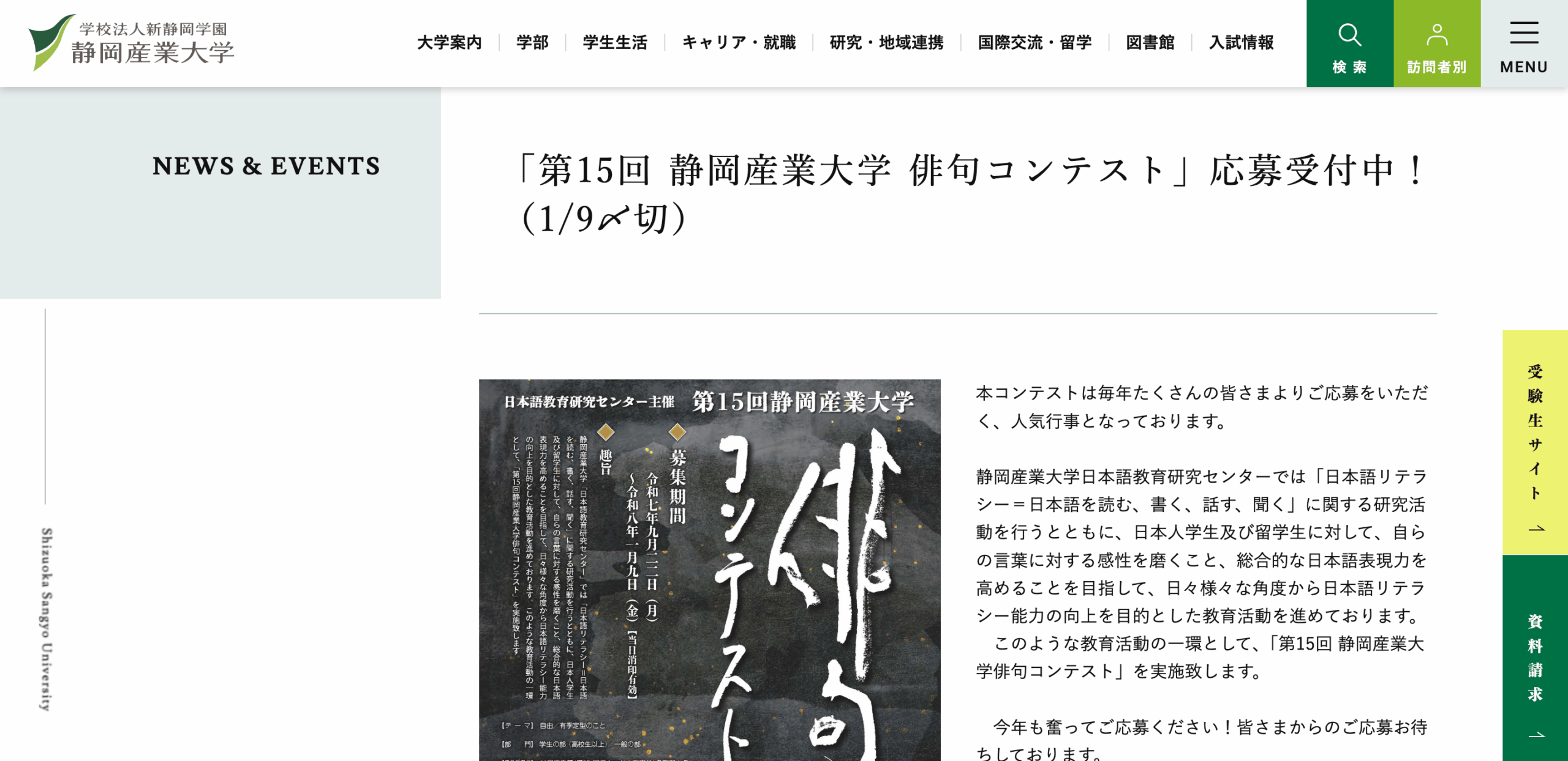 第15回 静岡産業大学 俳句コンテスト