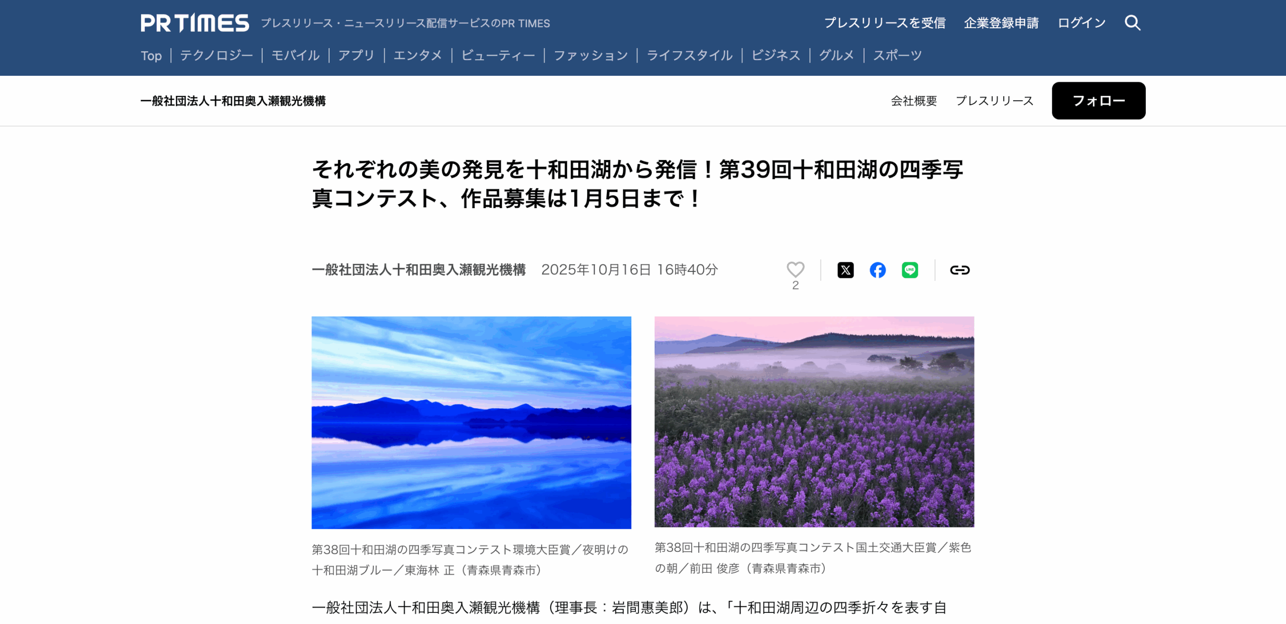 第39回十和田湖の四季写真コンテスト
