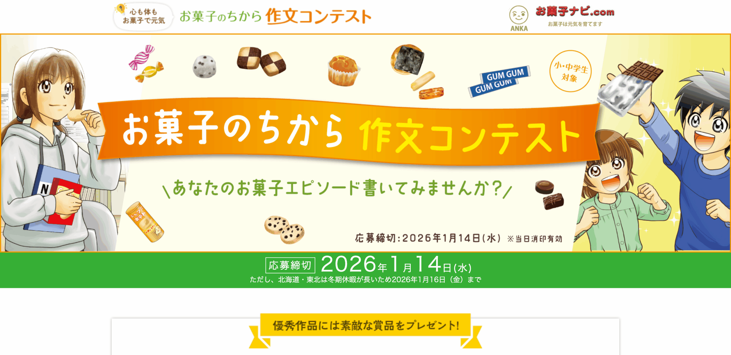 ●優秀学校賞(小・中学生各5校/計10校) Aコース(10万円相当の学校行事まるごとお菓子プレゼント)またはBコース(10万円分の図書カード)