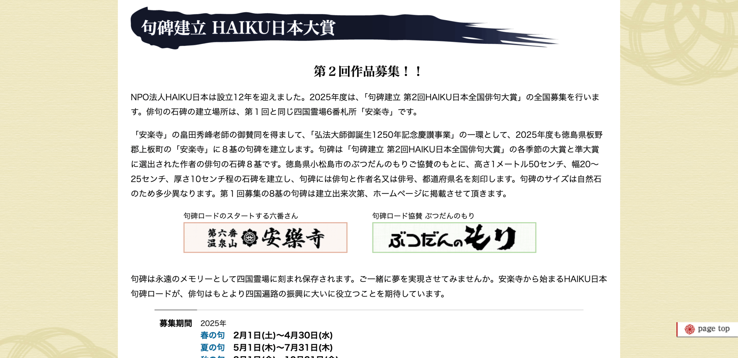 弘法大師生誕1250年記念第2回句碑建立HAIKU日本全国俳句大賞「冬の句」募集