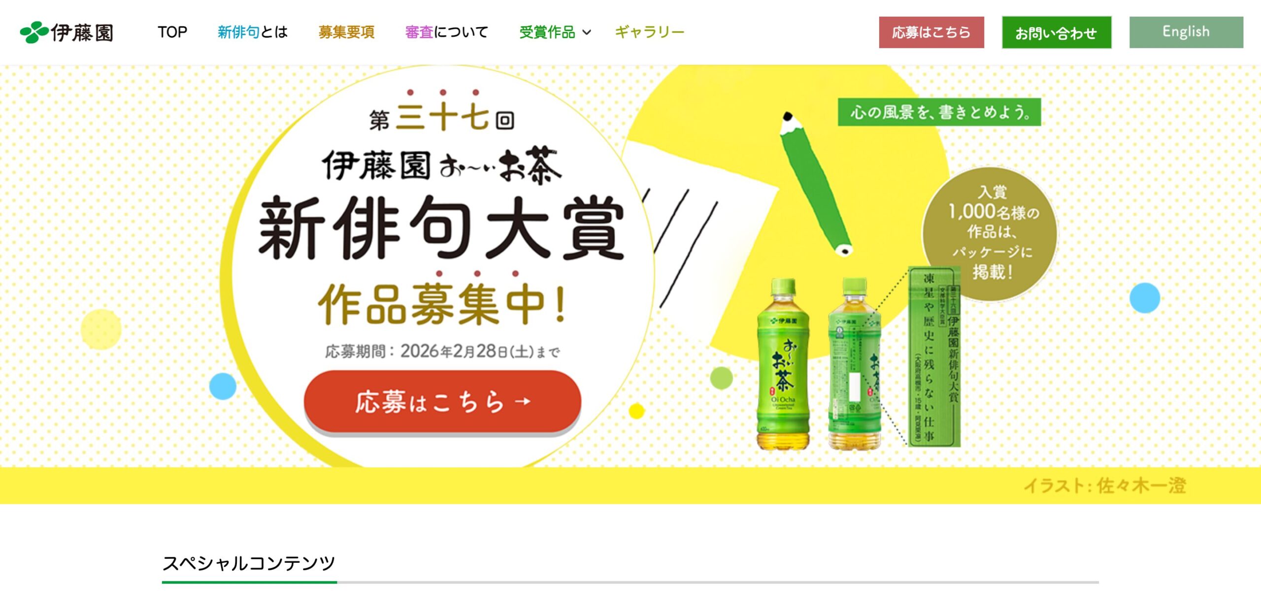 第37回 伊藤園お~いお茶 新俳句大賞【2026年2月28日締切】