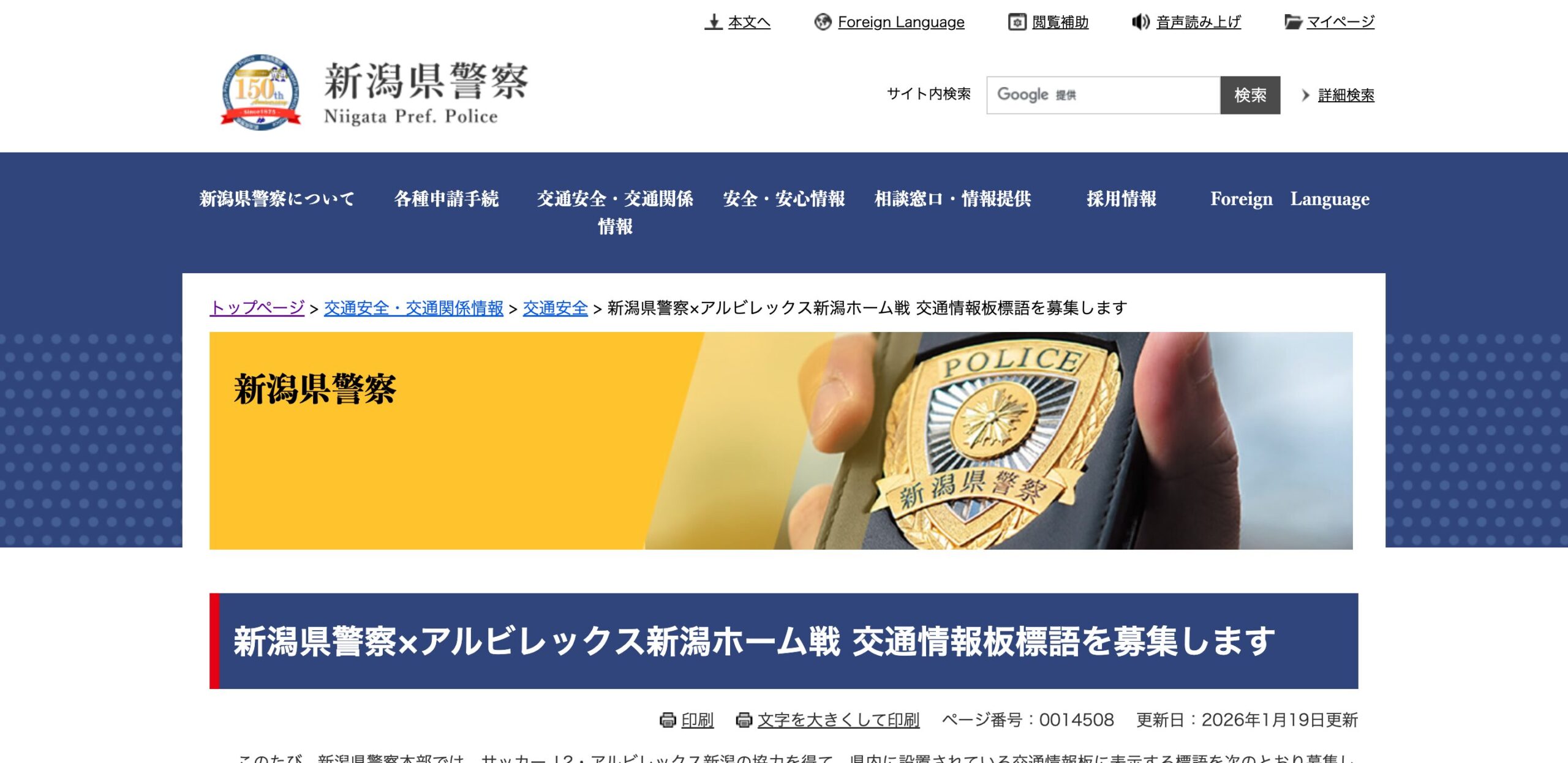 新潟県警察×アルビレックス新潟ホーム戦 交通情報板標語募集