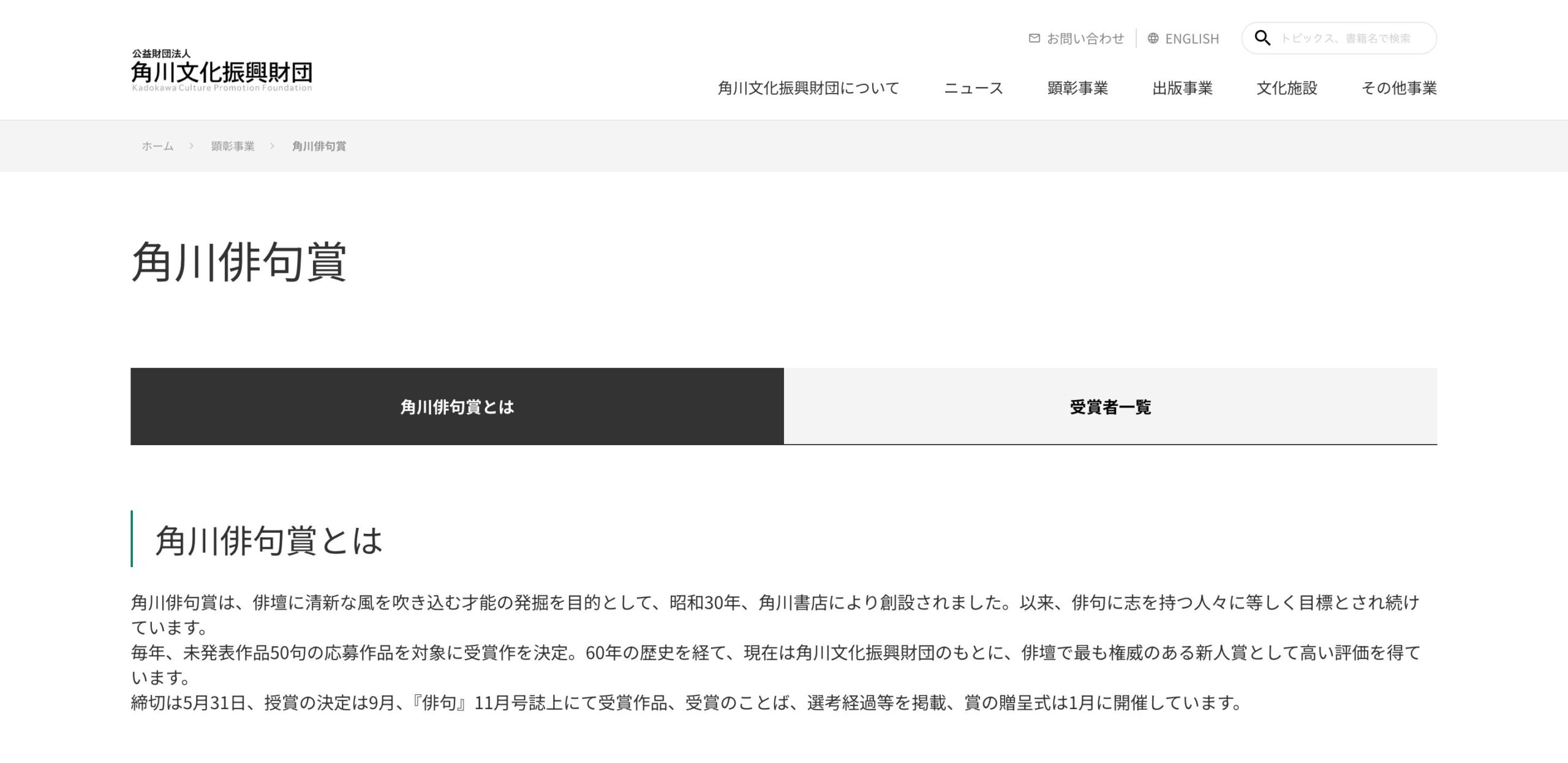 【角川俳句賞】(1点):賞状、記念品、ならびに副賞 30万円