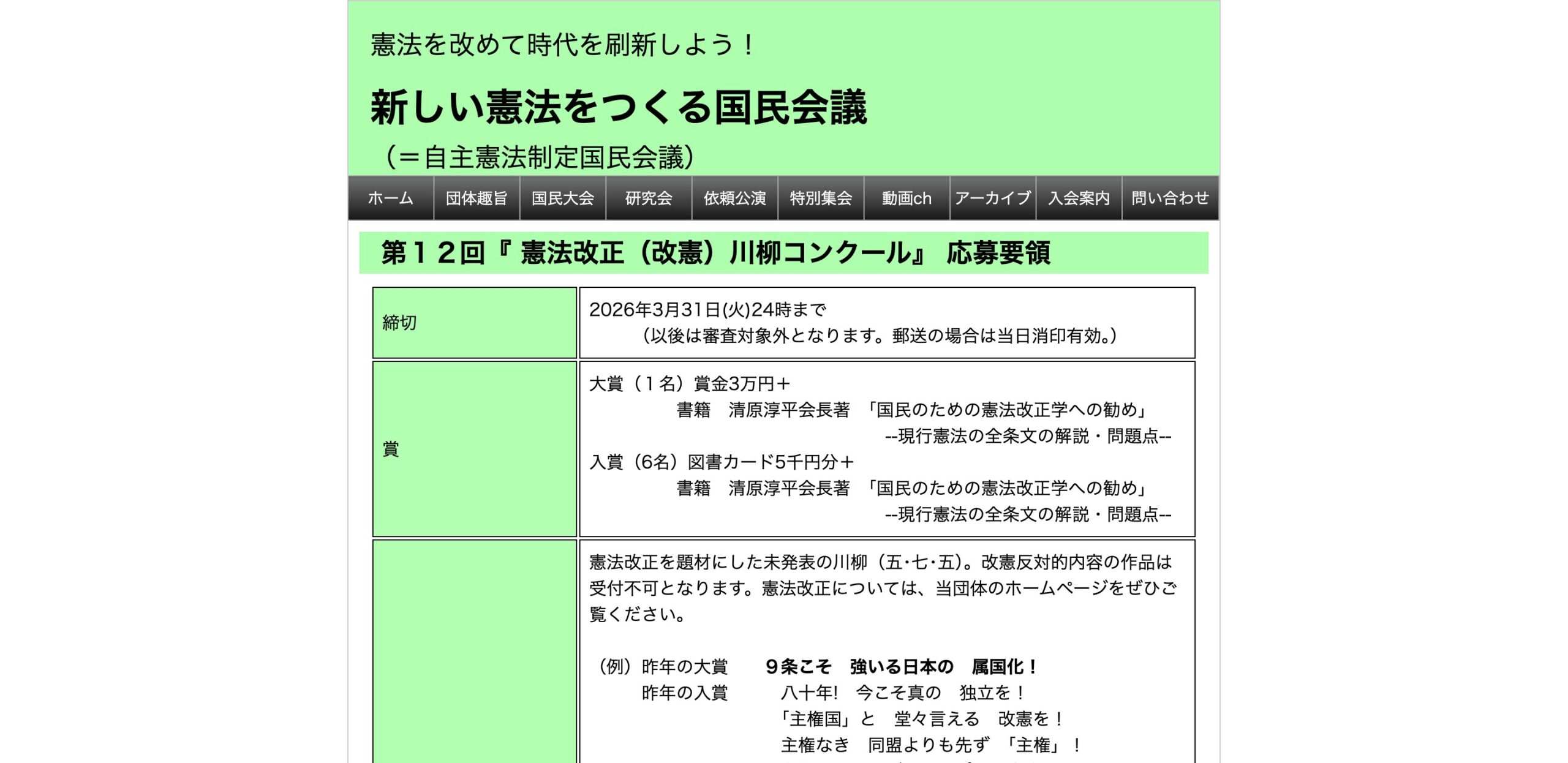 第12回 憲法改正(改憲)川柳コンクール【2026年3月31日締切】